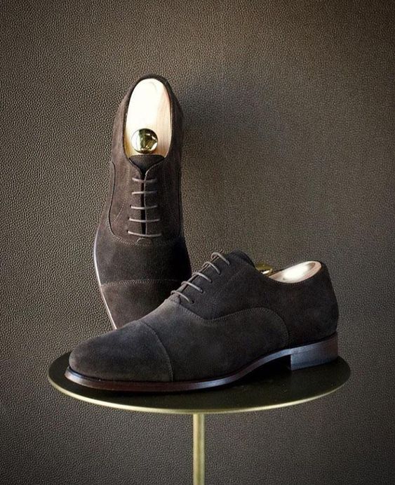 Handmade Men Oxford Round Toe Dress Business Shoes, Real Suede Office Shoes