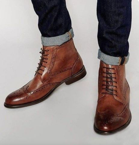 New men brown chukka wing tip brogue lace up ankle leather dress boot, formal boot, business boots