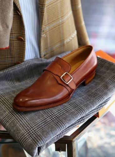 Handmade men dark brown monk strap business shoes for men, leather dress shoes