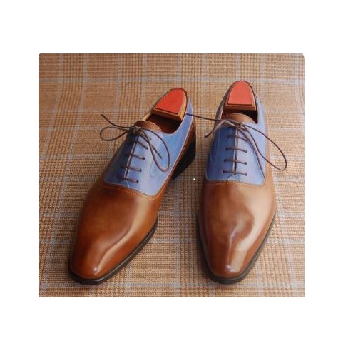 Handmade men brown and blue business Lace Up shoes for men, leather dress shoes
