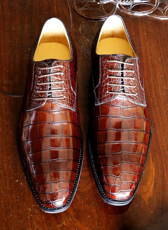 Handmade Brown Alligator Texture Leather Shoes with lace up closure, Men Dress Shoes
