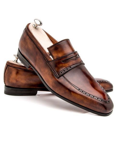 Handmade Men Burnished Brown Leather Moccasin Shoes, Causal Shoes for Men