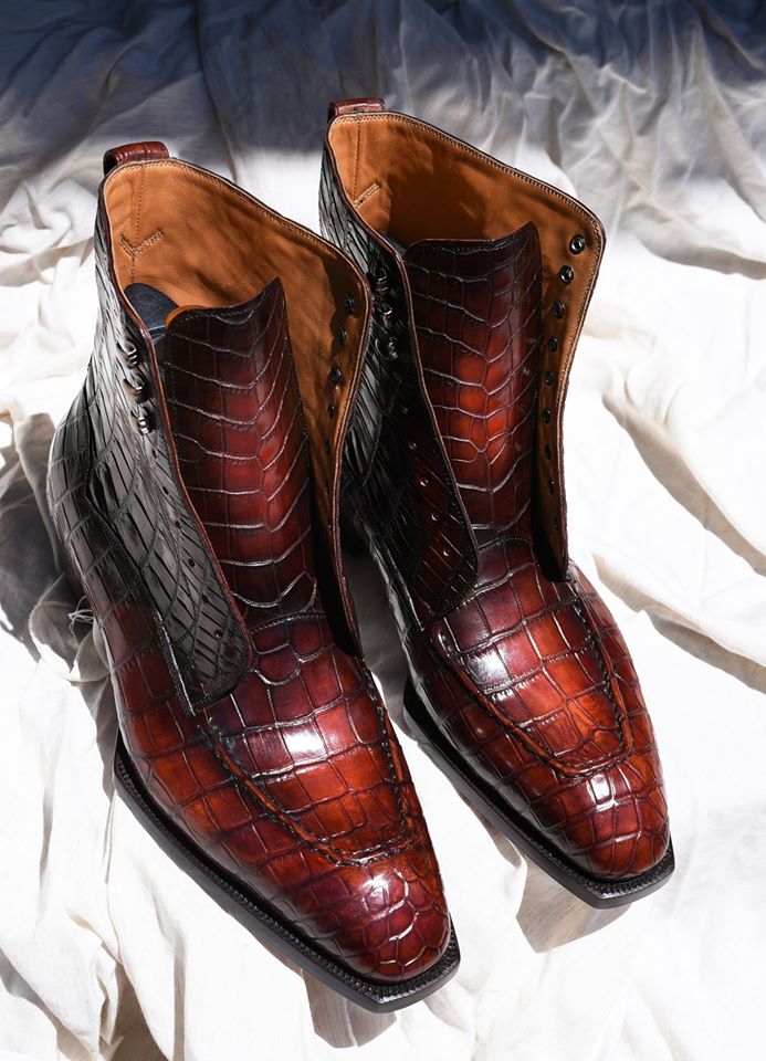 Handmade Men Brown Alligator Texture Leather High Ankle Boots, Leather Boots