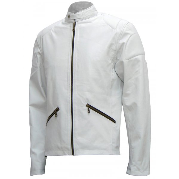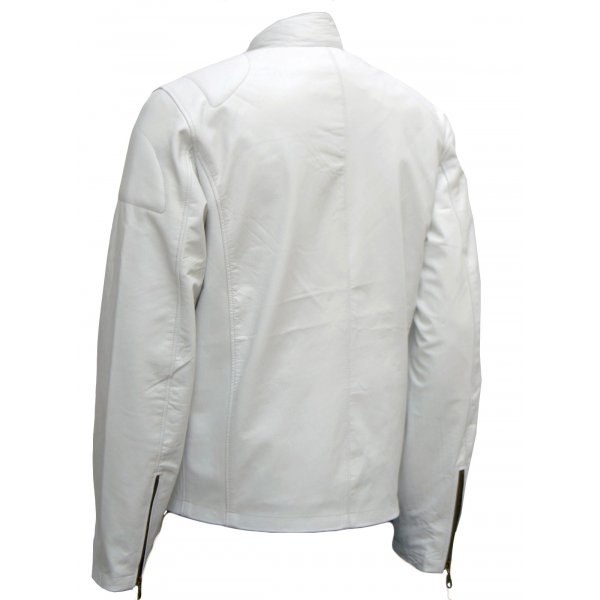 Men White Leather Jacket for Bikers and Racers, Men White Leather Fashion Jacket