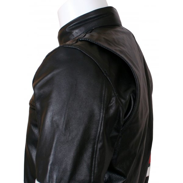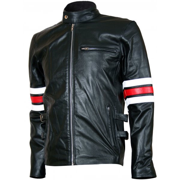 Men Black Leather Jacket with multicolor strips on arms, Men Leather Jacket for Bikers and Racers, Men Fashion Jackets