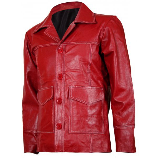 Classy Red Leather Jacket with Button Closure, Men Coat Style Leather Jacket