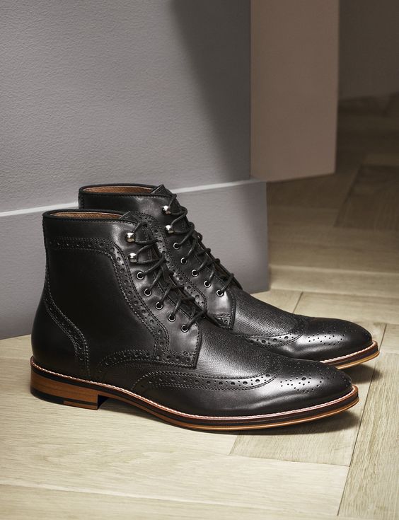 Men Black Leather Brogue Boots, Ankle Boot, Formal Business Boots for Men