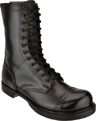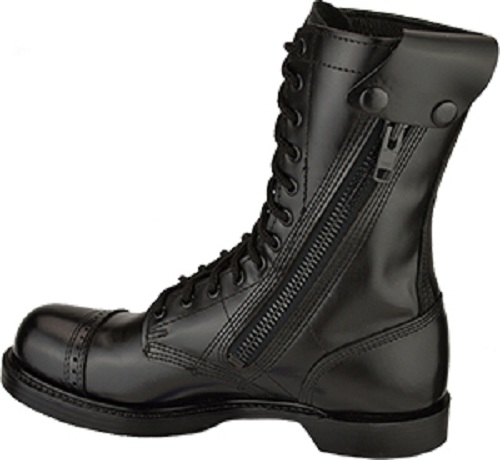 Men Black Leather Combat Military Long Boots, Side Jumper Zipper Boots