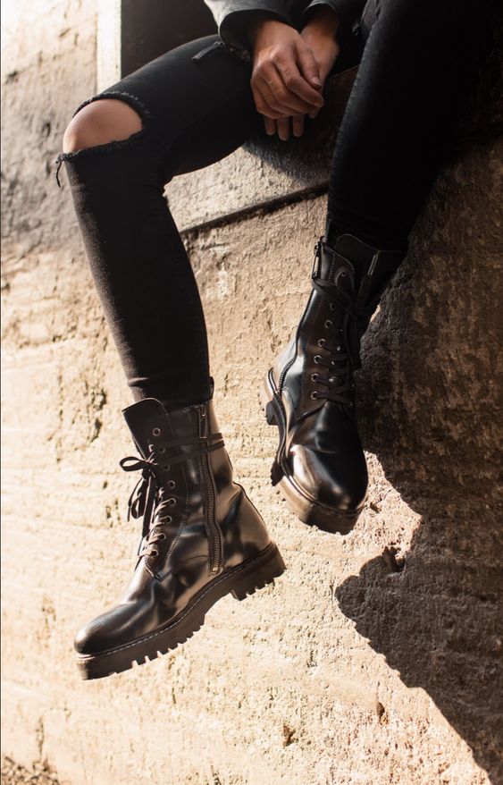 Men Black Leather Side Zipper Combat Boots, Military Boots, Biker Boots