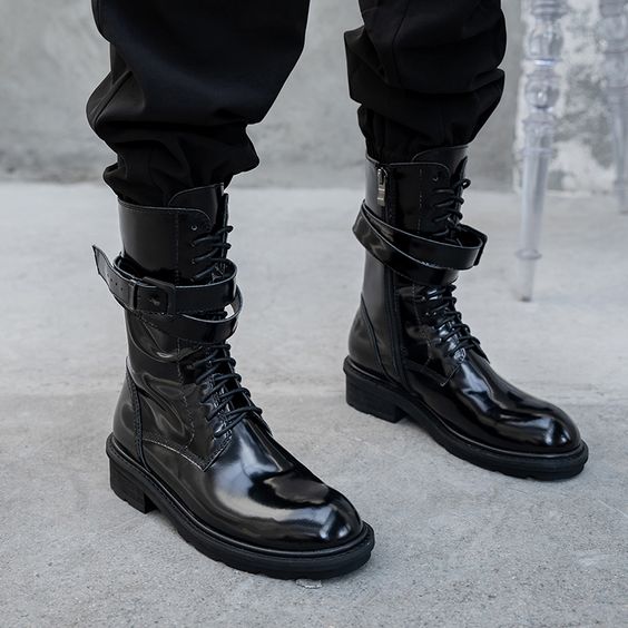 Handmade Men Black Leather Long Biker Boots, Winter High Boots, Leather Boots