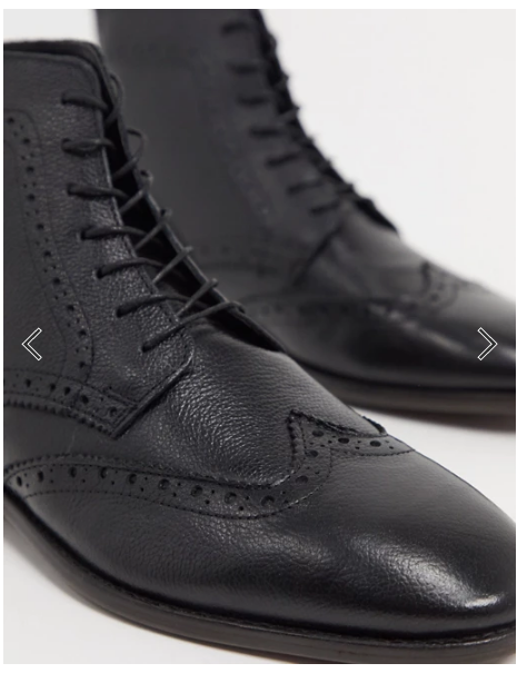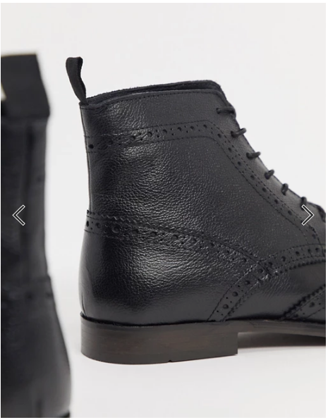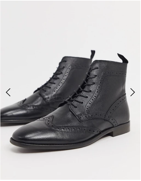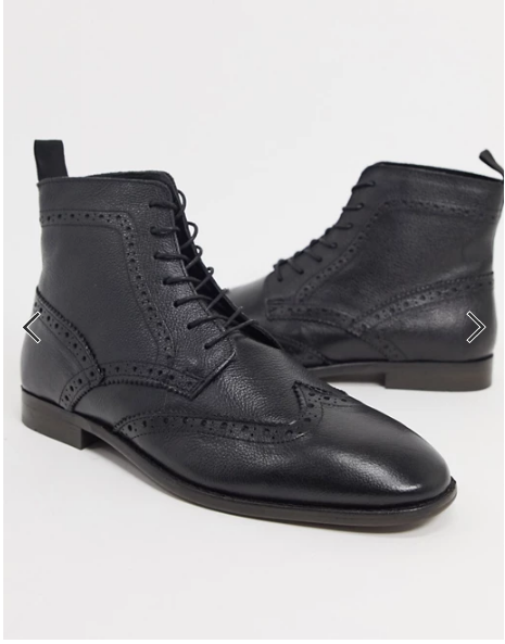 Men Black Leather Brogue Ankle Boots, Biker Winter Boots for men