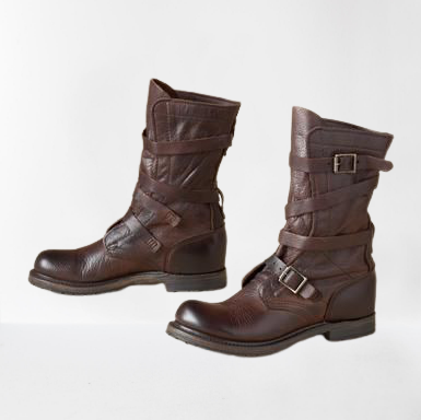 Brown Leather Military Boots for men, High Ankle Biker Boots, Winter Boots