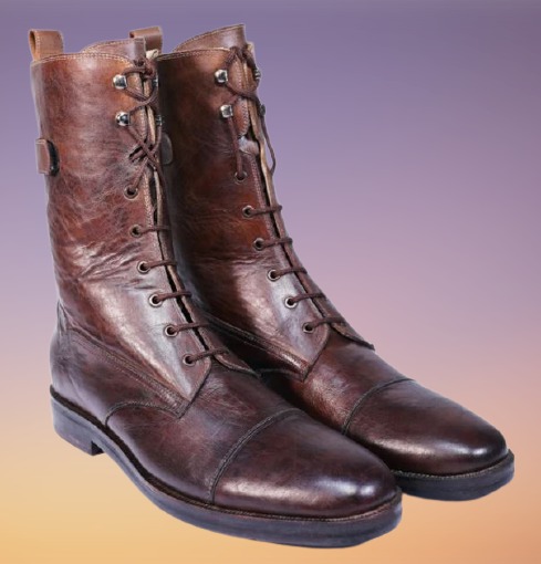 Handmade Men Brown Leather High Ankle Military Boots, Combat Jungle Boots