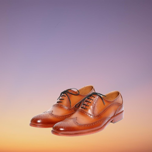Handmade Men Tan Leather Brogue Wingtip Formal Dress Shoes, Oxford Shoes