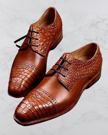 Men Handmade Brown Alligator Texture Leather Formal Dress Shoes