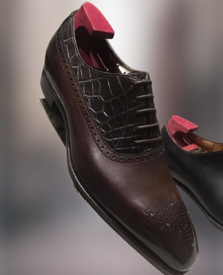 Men Brown Alligator Texture Brogue Dress Shoes, Formal Dress Shoes
