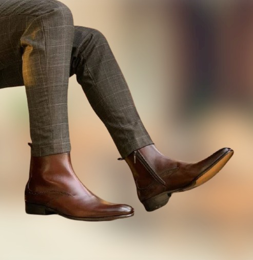 Handmade Men Brown Leather Side zipper Boots, Brown Biker Boots for men