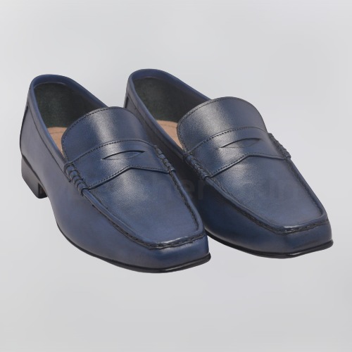 Handmade Men Blue Leather Moccasin slip on shoes, Loafer Shoes