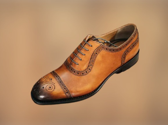 Handmade Men Tan Leather Brogue Dress Shoes, Office/ Business Shoes