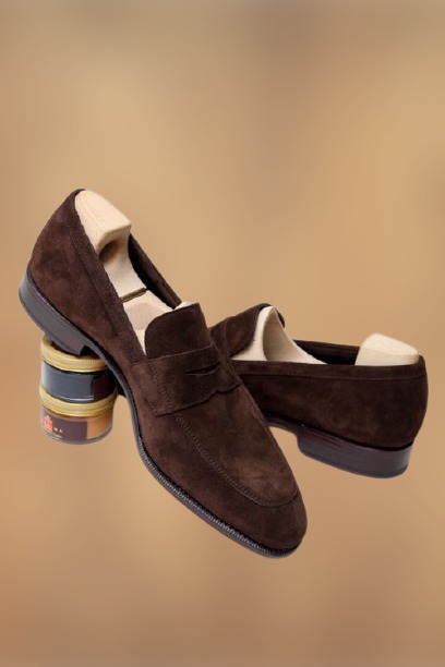 Men Handmade Brown Suede Leather Moccasin Loafer Shoes, Slip on Shoes