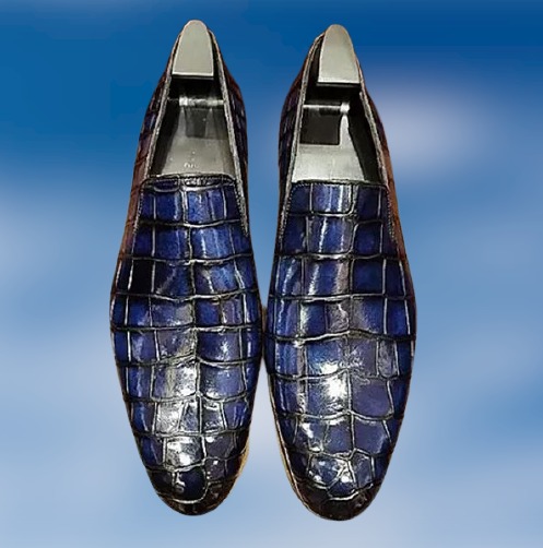 Men Handmade Blue Alligator Texture Leather Moccasin Shoes, Men Loafers