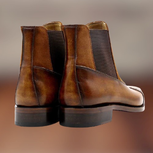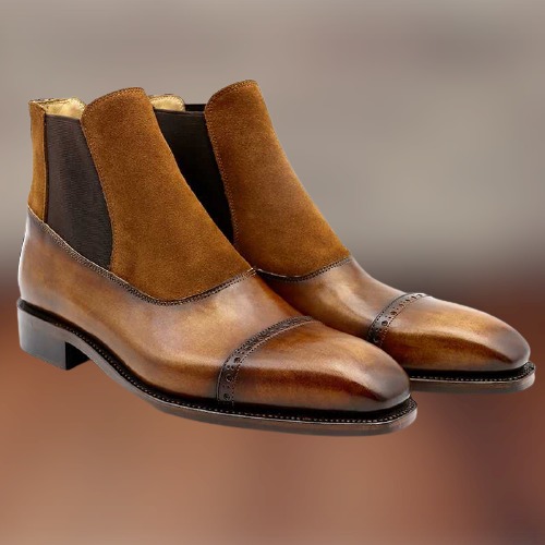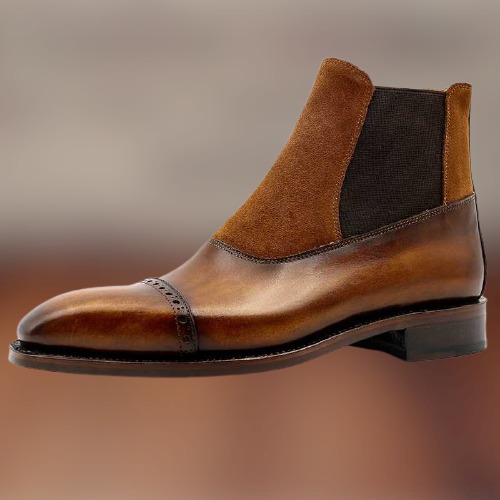 Handmade Men Tan Brown Leather and Suede Ankle Boots, Business Boots