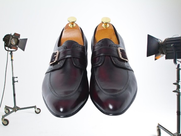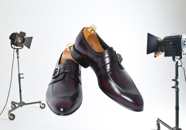 Men Formal Shaded Burgundy Leather Monk Shoes, Handmade Men Shoes