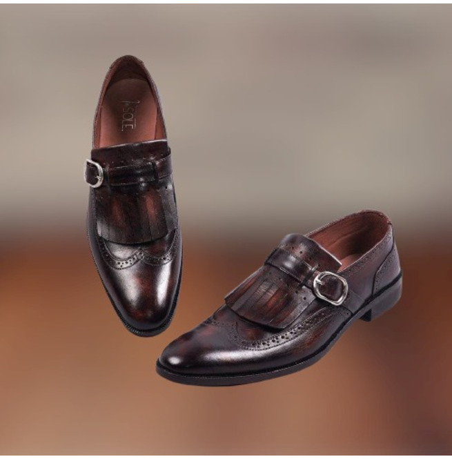 Handmade Men Brown Monk Shoes with Fringes, Classic Brown Business Shoes