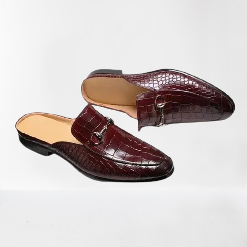 Handmade Men Red Crocodile Texture Leather Mules, Crocodile Slip on Shoes