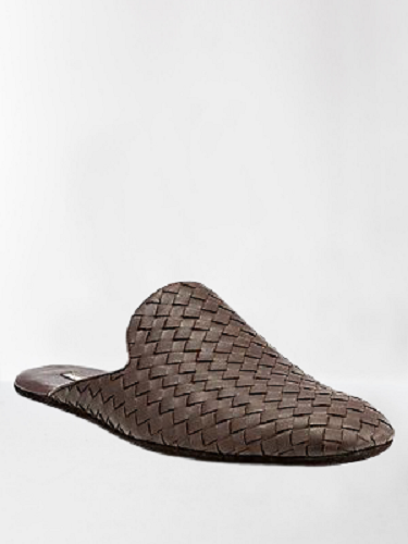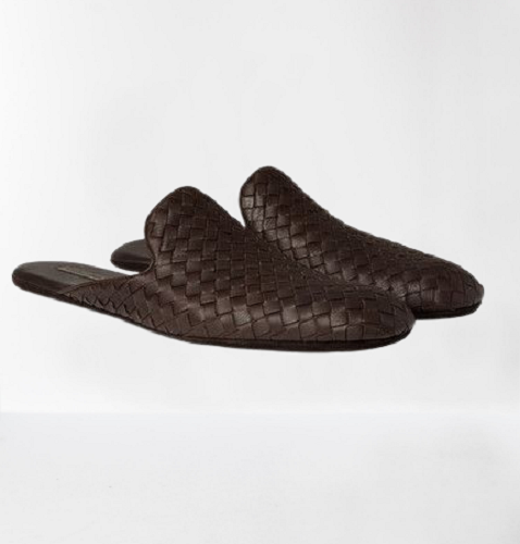 Handmade Men Brown Leather Woven Chittai Mat Mules, Moccasin Shoes