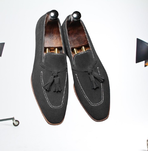Handmade Men Black Suede Leather Formal Dress Shoes, Suede Casual Shoes