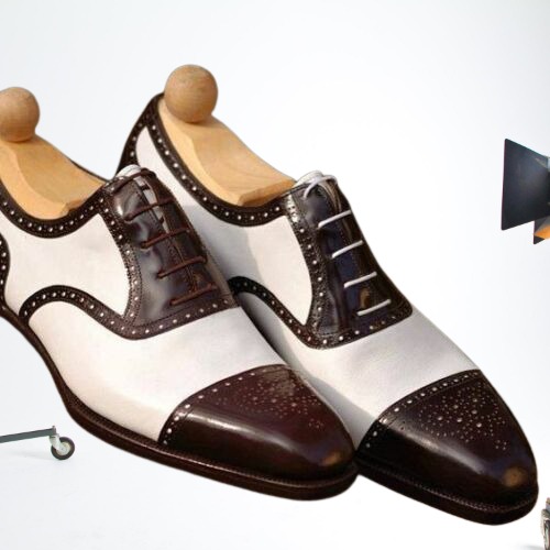 Handmade Men Dark Brown and White Brogue Formal Dress Shoes, Brogue Shoes