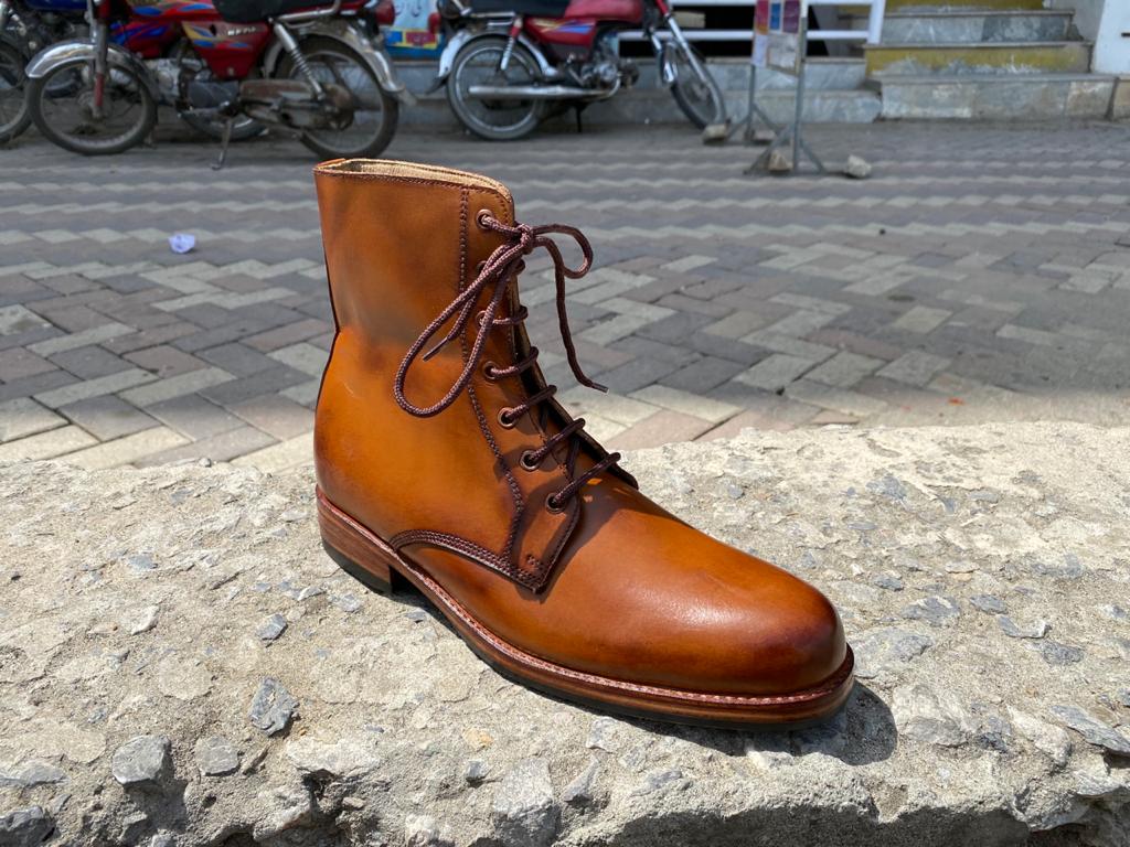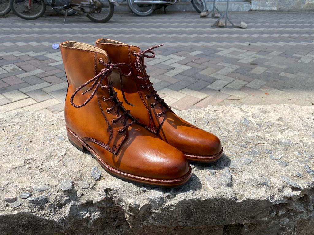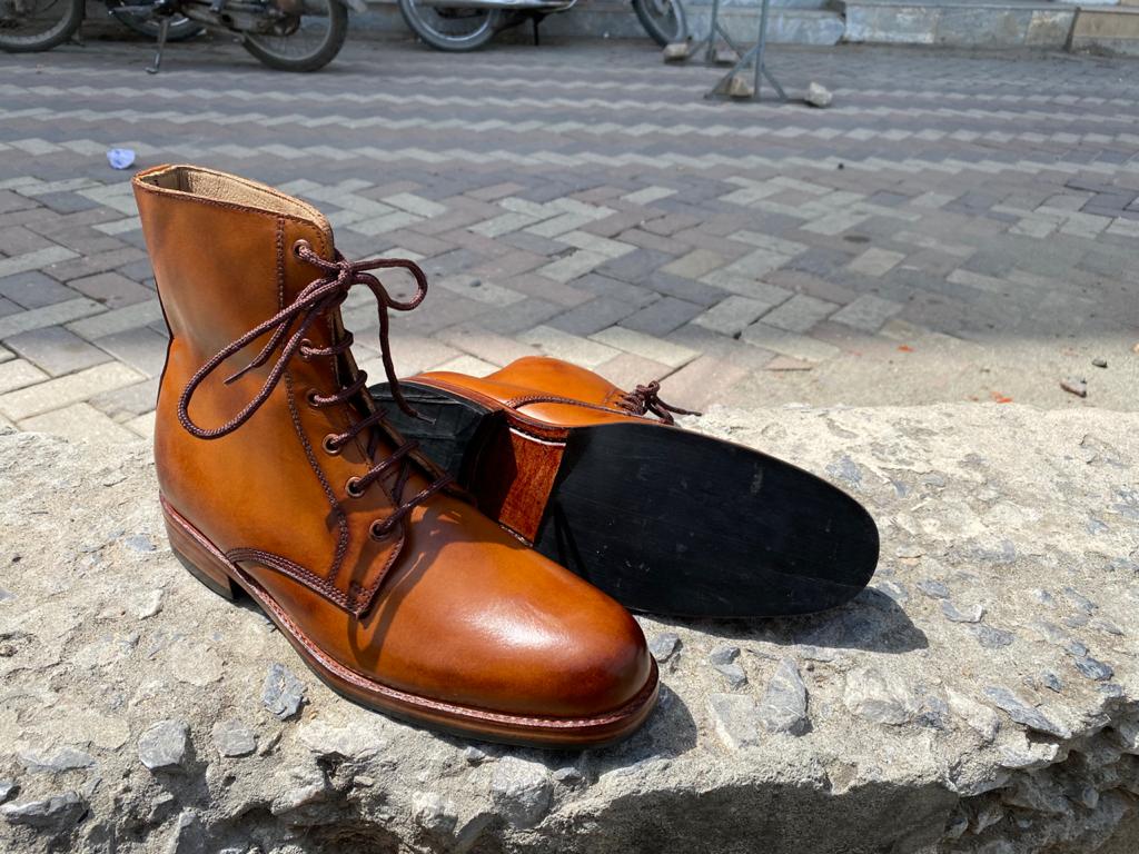 Handmade Tan Leather Ankle Boots with laceup closure, Men biker boots
