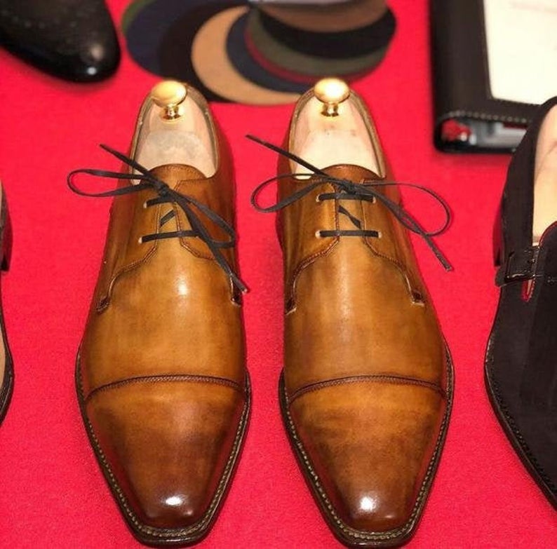 New Pure Handmade Brown Leather Lace up Shoes for Men's, Oxford Shoes