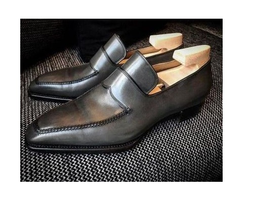 Handmade Men Gray Leather Moccasin Shoes, Gray Business Office Shoes