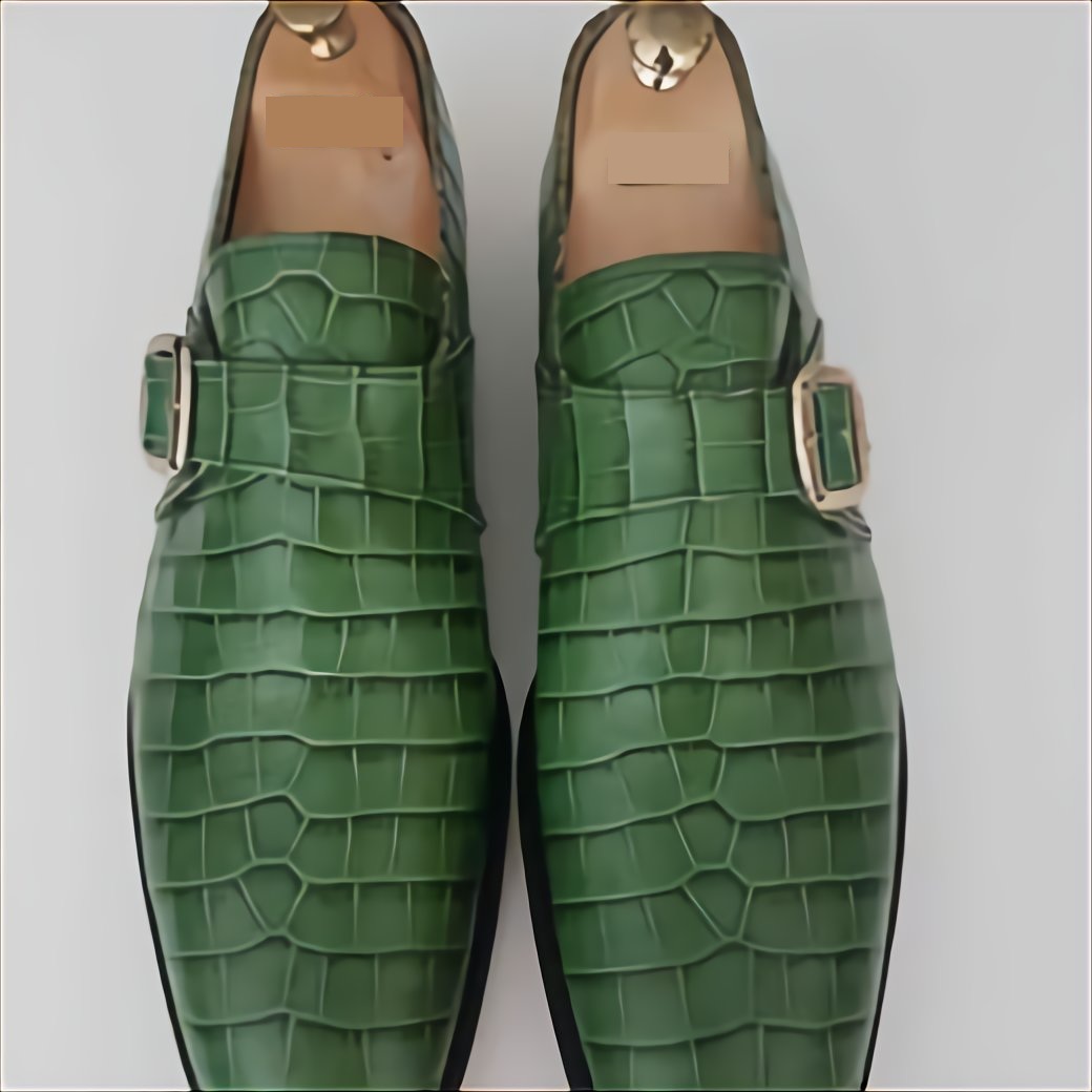 Men Green Crocodile Texture Leather Monk Shoes, Classic Party Shoes