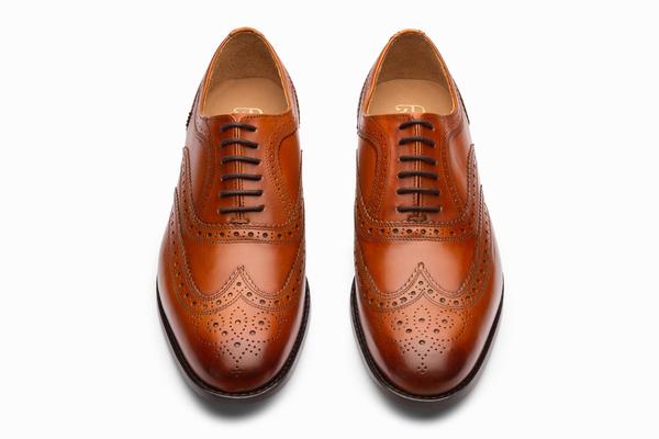 Handmade Men Tan Leather Brogue Style Oxford Shoes, Business Office Shoes