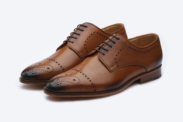 Men Handmade Brown Leather Brogue Derby Shoes, Office Shoes for men
