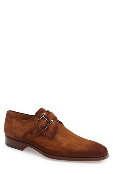 Men Handmade Brown Suede Leather Monk Shoes, Suede Office Shoes