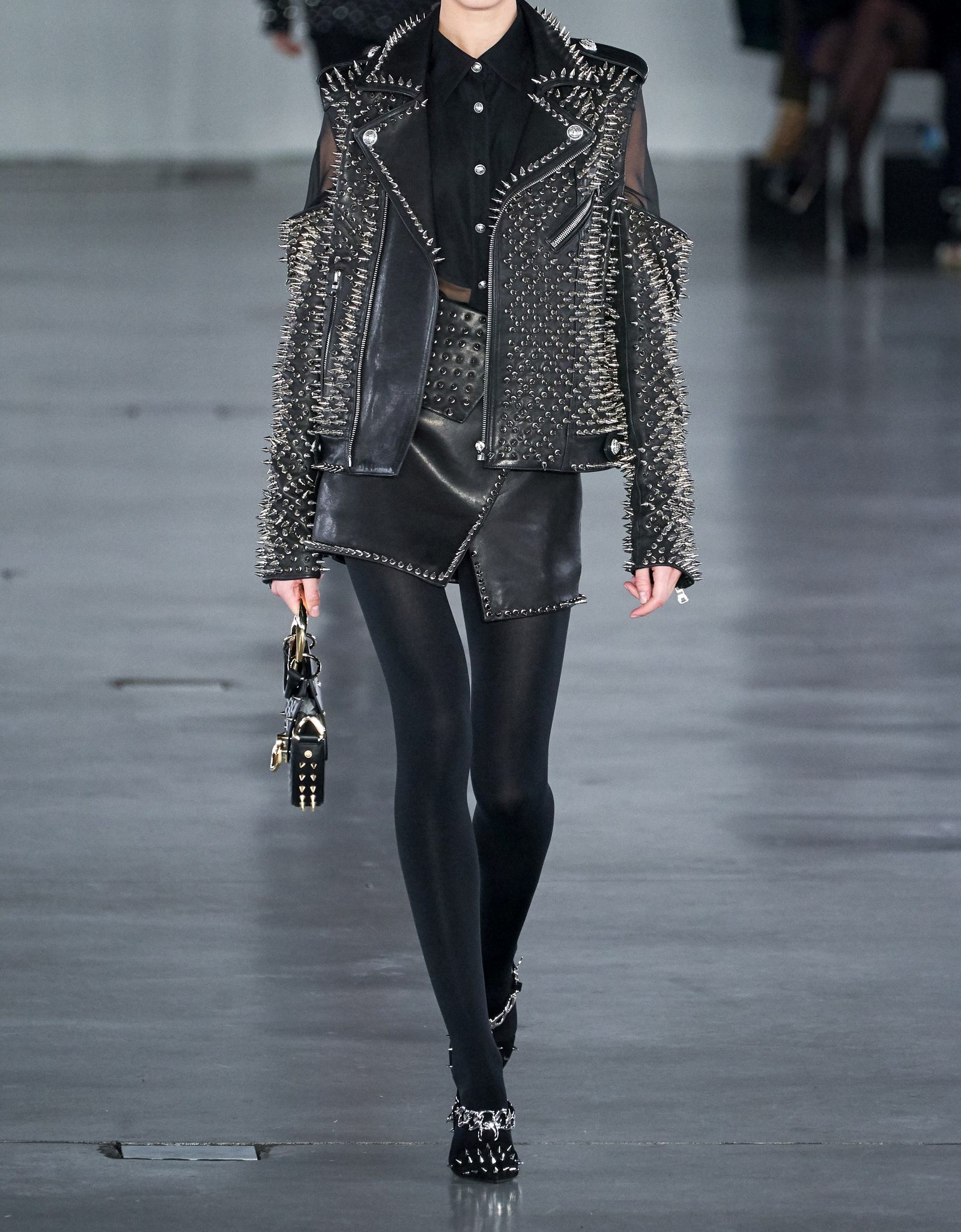 Women Black Leather Cold Shoulder Studded Jacket, Studded Fashion Jacket, Cold Shoulder Leather Jacket