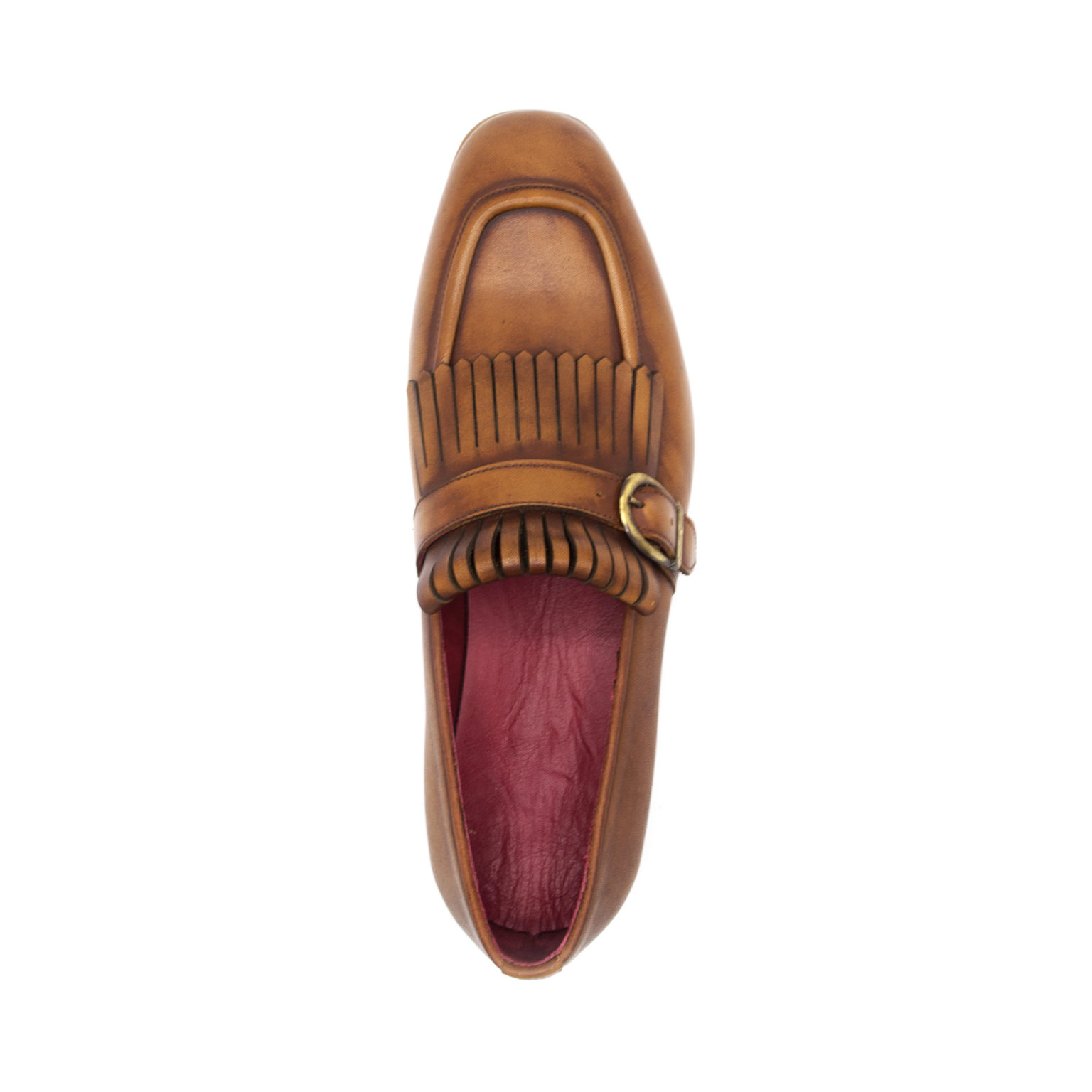 Handmade Tan Leather Moccasin Shoes with fringes, Loafer Shoes, Peas Shoes