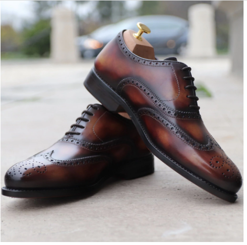 Handmade Men Shaded Brown Leather Brogue Shoes, Oxford Formal Dress Shoes