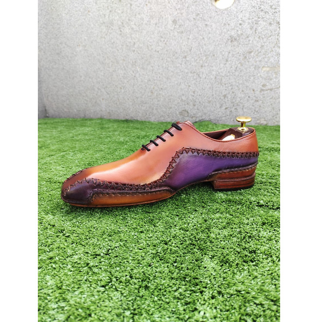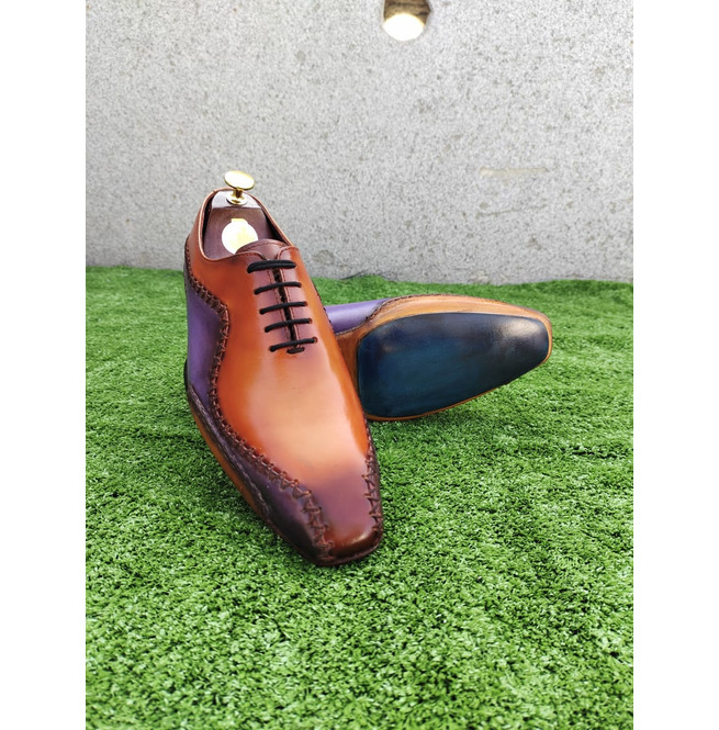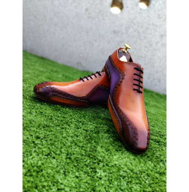 Handmade Men Patina Stitched Style Formal Dress Shoes, Bespoke Patina Shoes
