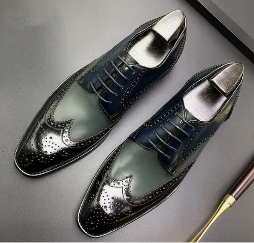 Handmade Men's Wing Tip Brogue Cap Toe Lace Up Dress Shoes, Real Leather Shoes