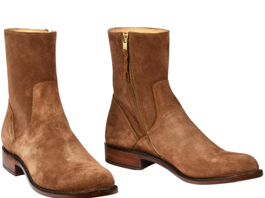 Handmade Mens Brown Suede Zip up Ankle Boots, Men Brown Casual Boots