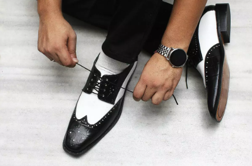 New Spectators Two Tone Lace Up Formal Shoes, Men Wingtips Brogue Leather Dress Shoes