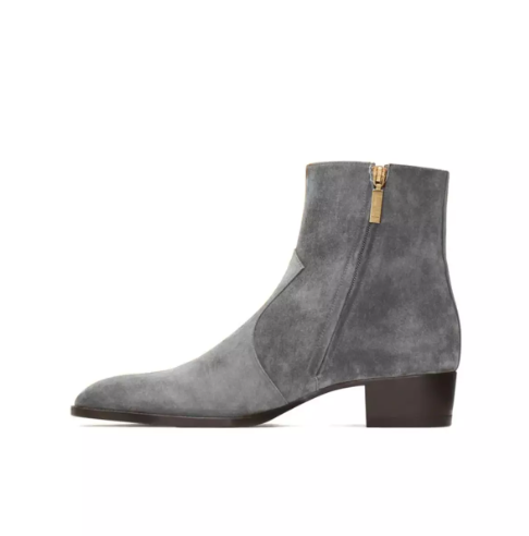 New Gray Handmade Suede Chelsea Ankle Formal Boots for Mens, Men Dress Boot, New Zipper Boot