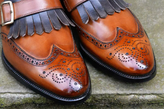 New Handmade Leather Wingtip Brogue Fringes Monk Strap Dress Shoes For Men's