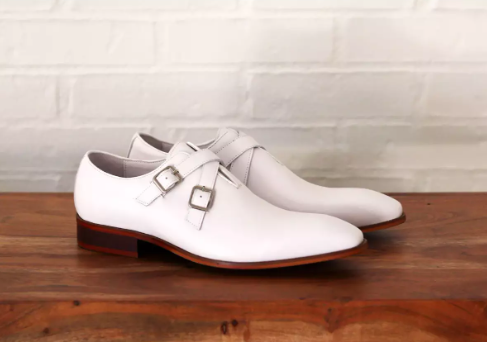 Handmade Mens White Buckle Shoes, Men Oxford Dress Shoes, Shoes for Men